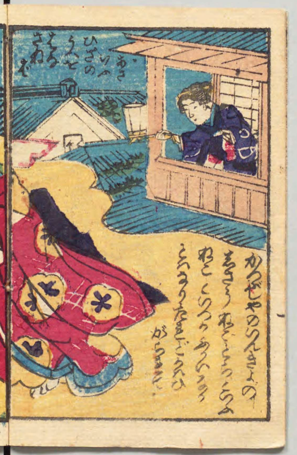 二階上り口の板の間は見開きでつながってますが、おこまのいる座敷とにく蔵の座敷がつながっていません。うっかり間違えてしまったのでしょう。