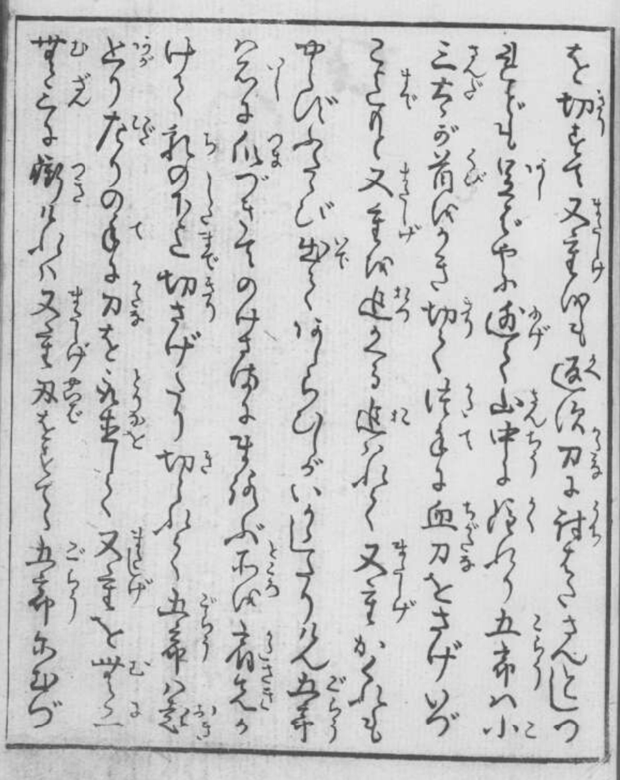 毛の於こり越ふるい其 人 形 尓王びことし天癒 多り夜